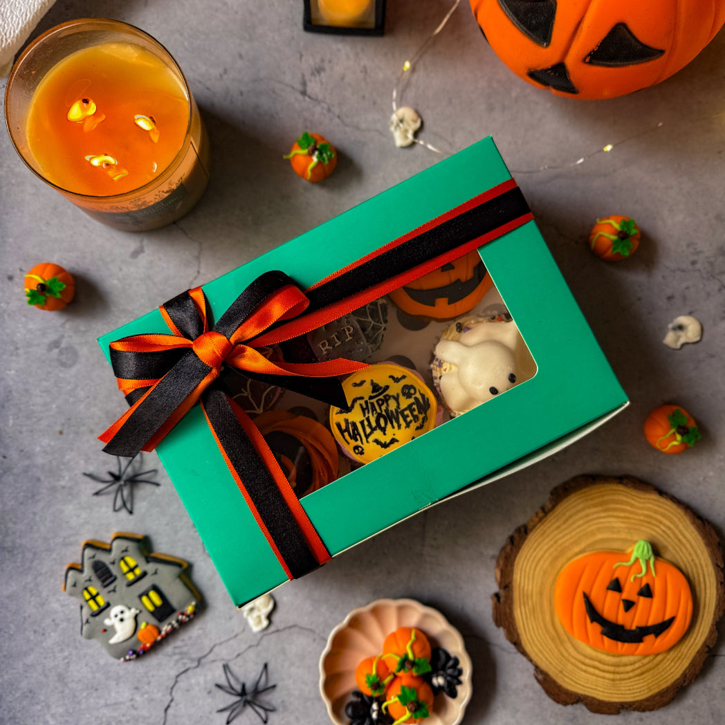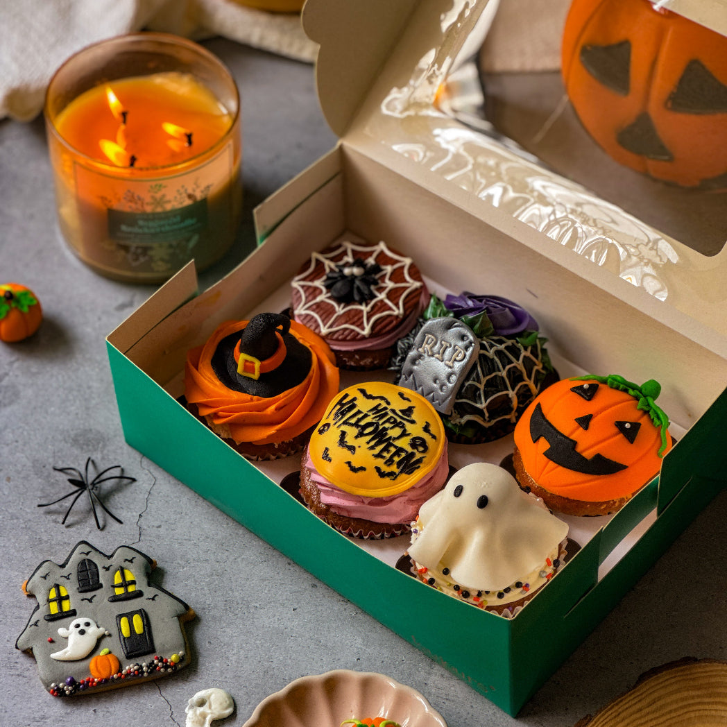 A treat that’s as spooky as it is sweet! Our Halloween Cupcakes come in six hauntingly beautiful designs — from witch hats to pumpkins and ghosts. Moist, fluffy, topped with our signature buttercream and decorated with handcrafted fondant designs, these cupcakes are a must-have for Halloween gatherings and dessert tables.